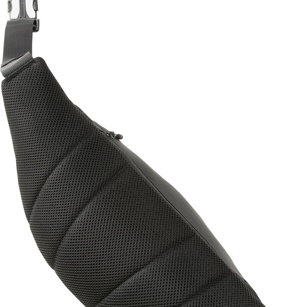 薄手のウインドブレーカーや補給食、貴重品等を収納できる4リッター容量の中型ウエストバッグです。フロントと背面に収納スペースを設け、荷物の仕分けが便利。たすき掛けにして使用することもできる、ワンハンドアジャストの片引きタイプです。メイン生地と補強生地の両方にリサイクル素材を採用し、環境保護へも配慮しています。