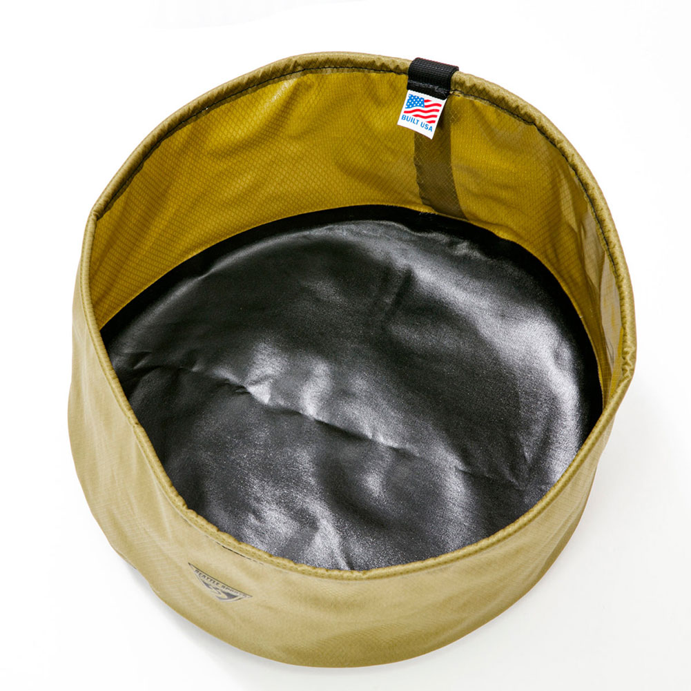 コンパクトに丸めて持ち運びできるウレタンコーティングリップストップナイロンを使ったバケツです。
