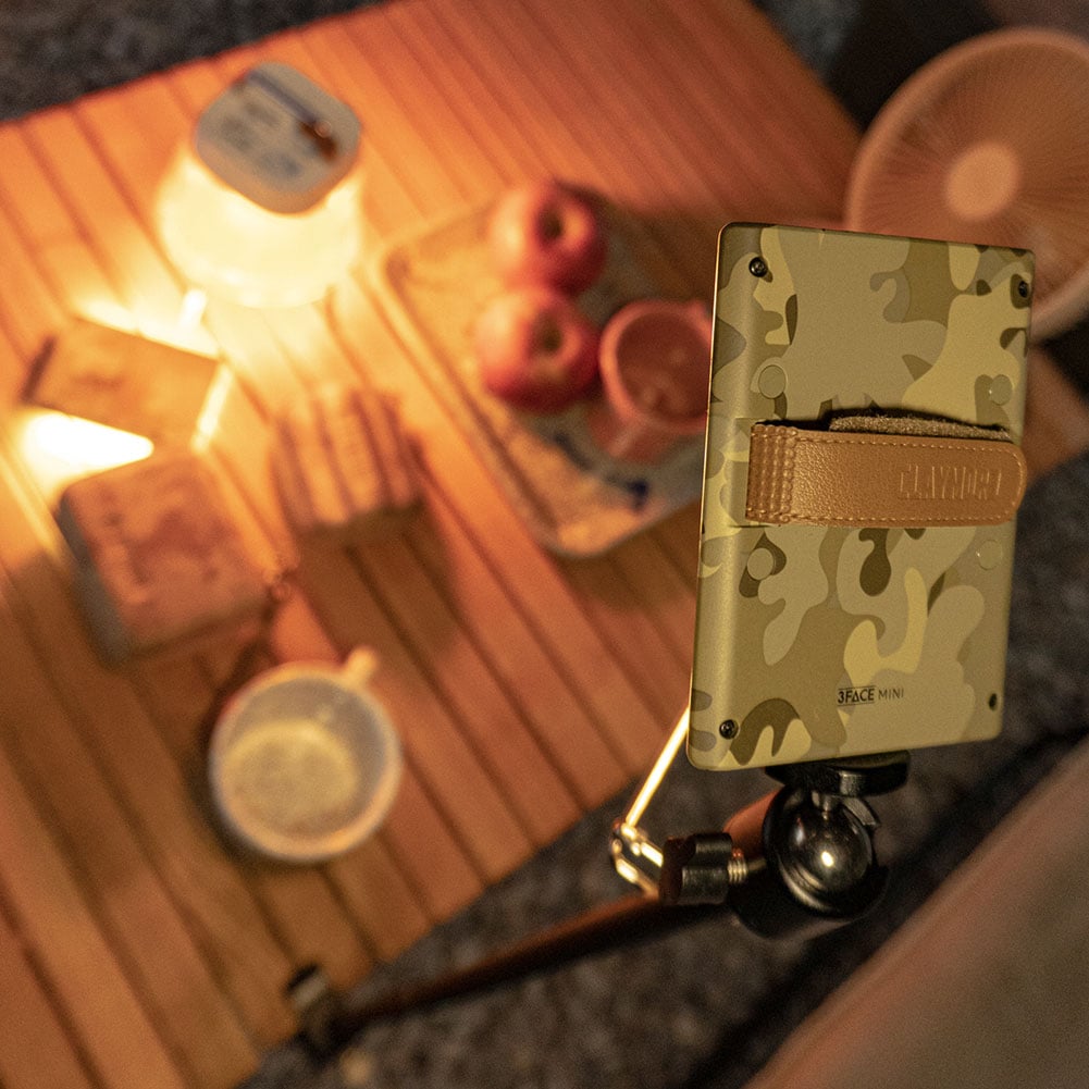 話題の3FACEシリーズにてのひらサイズが登場です。最大照射範囲約200度の広範囲を、最大800ルーメンの明るさで照らしだします。発光モードは3面発光と前面発光の2タイプ、それぞれ無段階調光が可能。背面ストラップ(面ファスナー付き)が付いているので、持ち運びや吊り下げも簡単です。こまわりの効くミニマルライトとしてはもちろん、ちょっとしたアクティビティでも活躍が期待できます。三脚ネジ穴、モバイルバッテリー機能、バッテリー残量表示とSOS信号点滅ももちろん標準搭載。