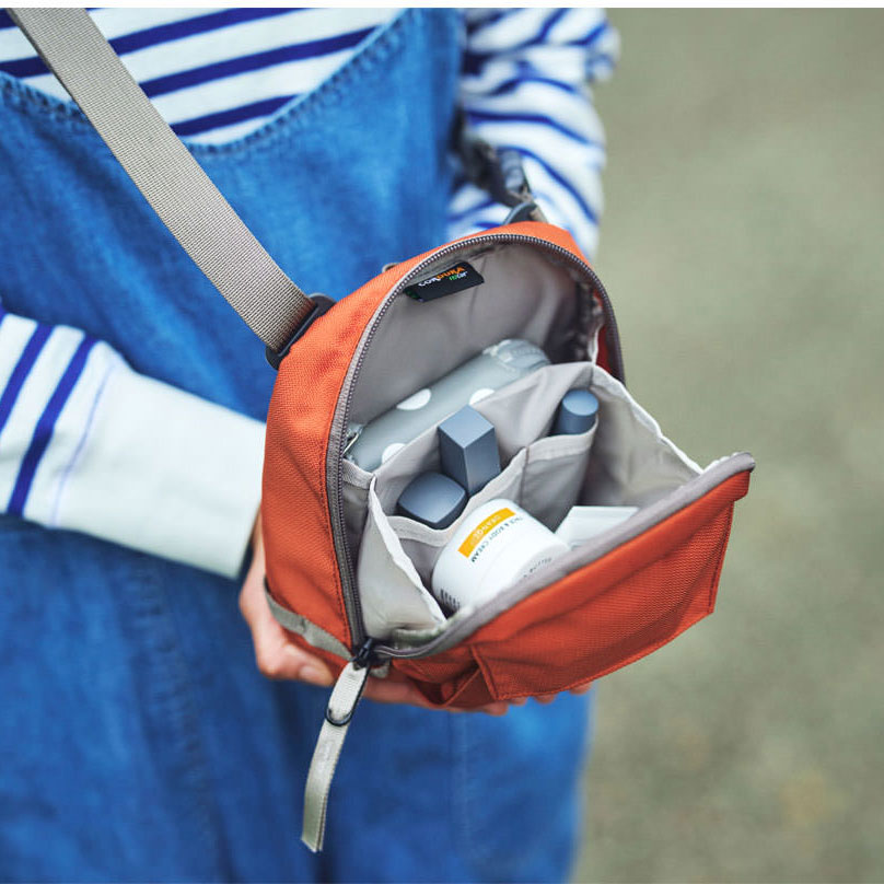 ストラップを腰に回せば、ヒップバッグのようにも使える設計/スマートフォンやタブレットを収納できるボディパネル裏側のスリットポケット/クイックリリースバックルにより片手で簡単にオン・オフのコントロールが可能/複数のポケット、オーガナイザーより狭いスペースでも整理整頓が可能/フロントポケットにはキークリップ