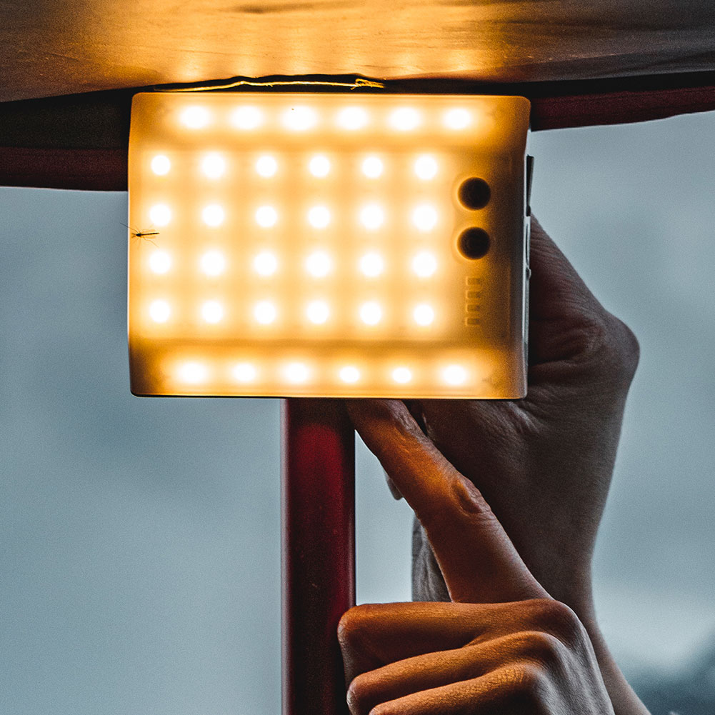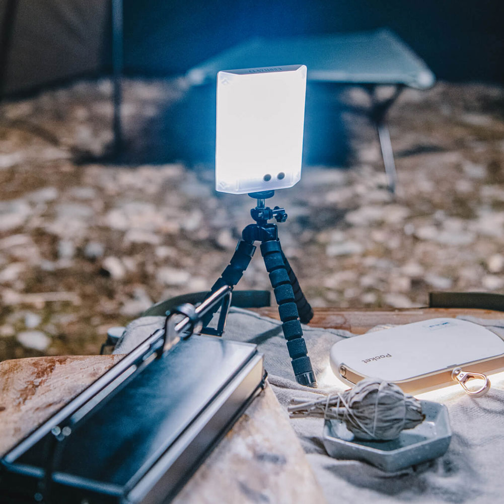 三脚に取り付けてスタンド型照明としても、ハンガーフックを付けて吊るし型照明としても。多目的に利用できるのが、クレイモア 3フェイス ミニの特長です。これ1台をポケットに入れて出かければ、辺りが暗くなってきた時でも、安心してアクティビティを楽しむことができます。