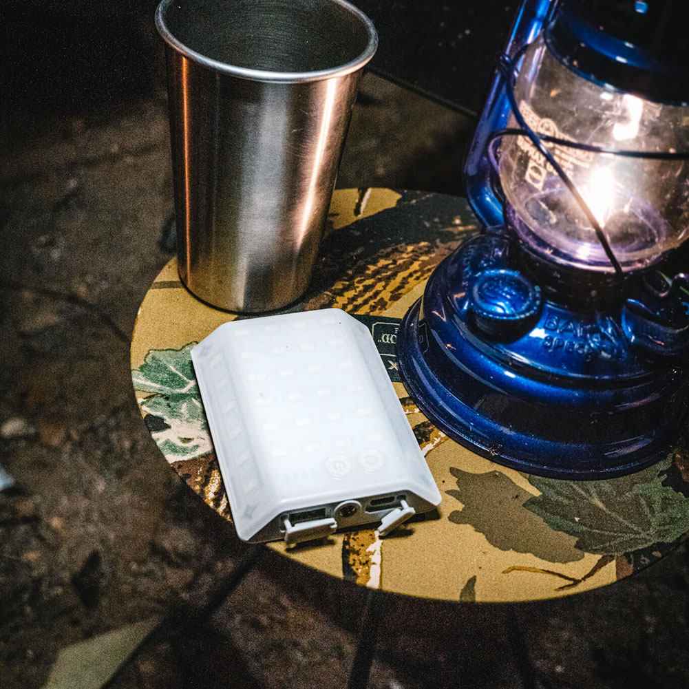 話題の3FACEシリーズにてのひらサイズが登場です。最大照射範囲約200度の広範囲を、最大800ルーメンの明るさで照らしだします。発光モードは3面発光と前面発光の2タイプ、それぞれ無段階調光が可能。背面ストラップ(面ファスナー付き)が付いているので、持ち運びや吊り下げも簡単です。こまわりの効くミニマルライトとしてはもちろん、ちょっとしたアクティビティでも活躍が期待できます。三脚ネジ穴、モバイルバッテリー機能、バッテリー残量表示とSOS信号点滅ももちろん標準搭載。
