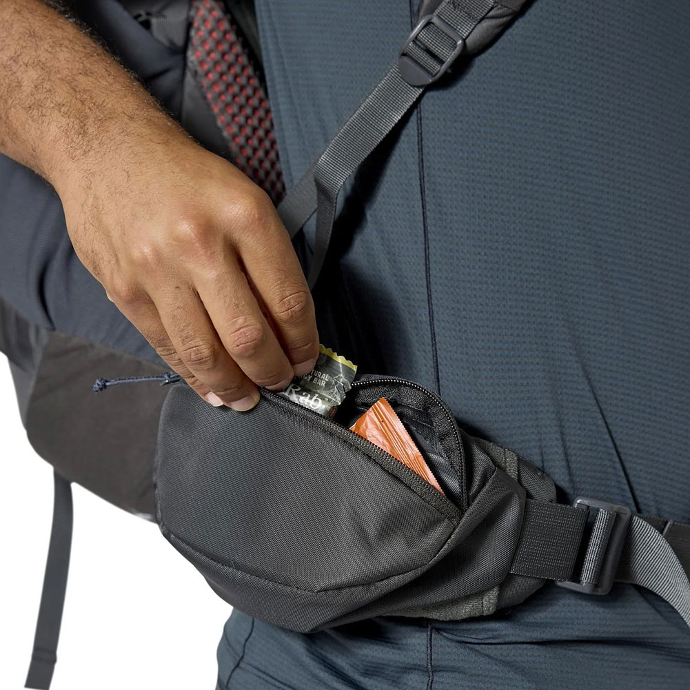 ・ヒップベルトは腰に合わせて回転するため、自然で自由な動きが可能になり、摩擦が軽減され、凸凹した地面でもパックが安定