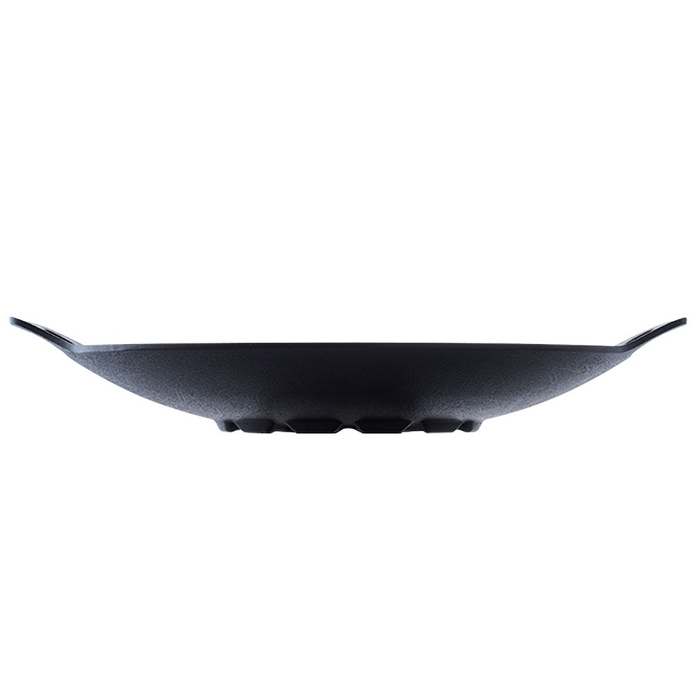 中心部が約4cm窪んだディープタイプは、食材と約1Lの水分が入るため、炒め料理はもちろん、パエリアや鍋など水分の多い調理も吹きこぼしの心配がなく、高い熱伝導率で食材のうま味を引出して美味しく仕上げてくれます。また、本体裏の溝が12個に増え、様々な五徳に対応します。29cm(単品)には、本体のほかに、シリコンミトンと収納袋が付属しています。収納袋があるので持ち出す際も傷がつきにくくて便利です。