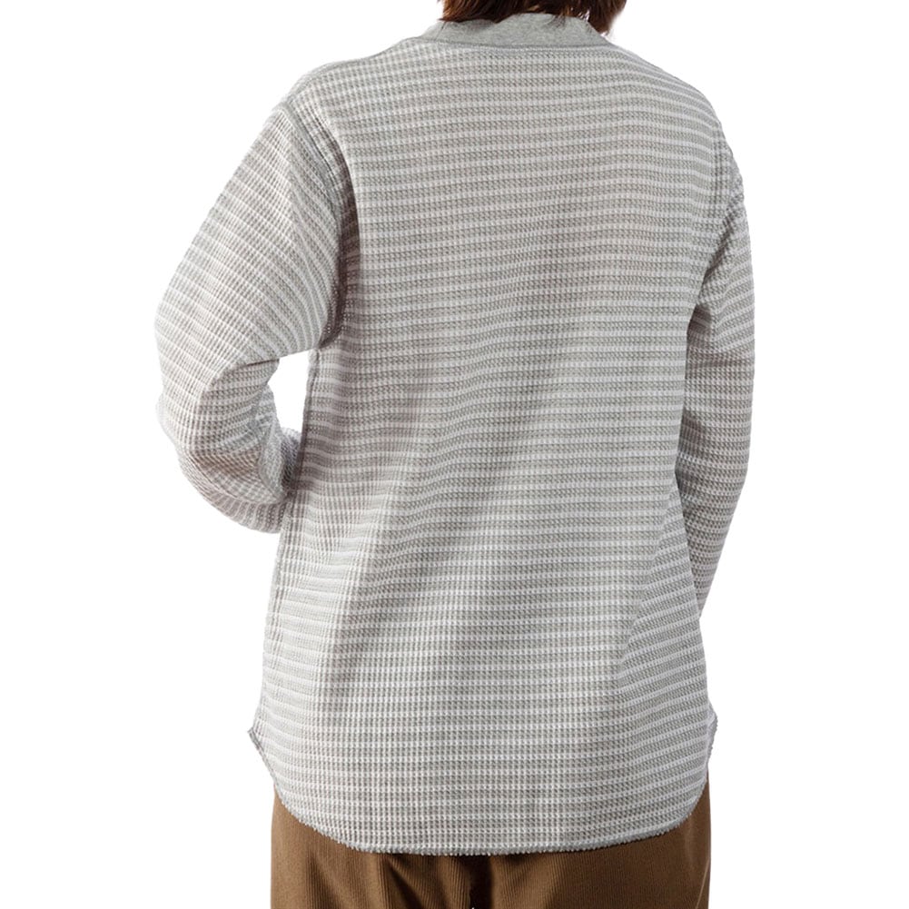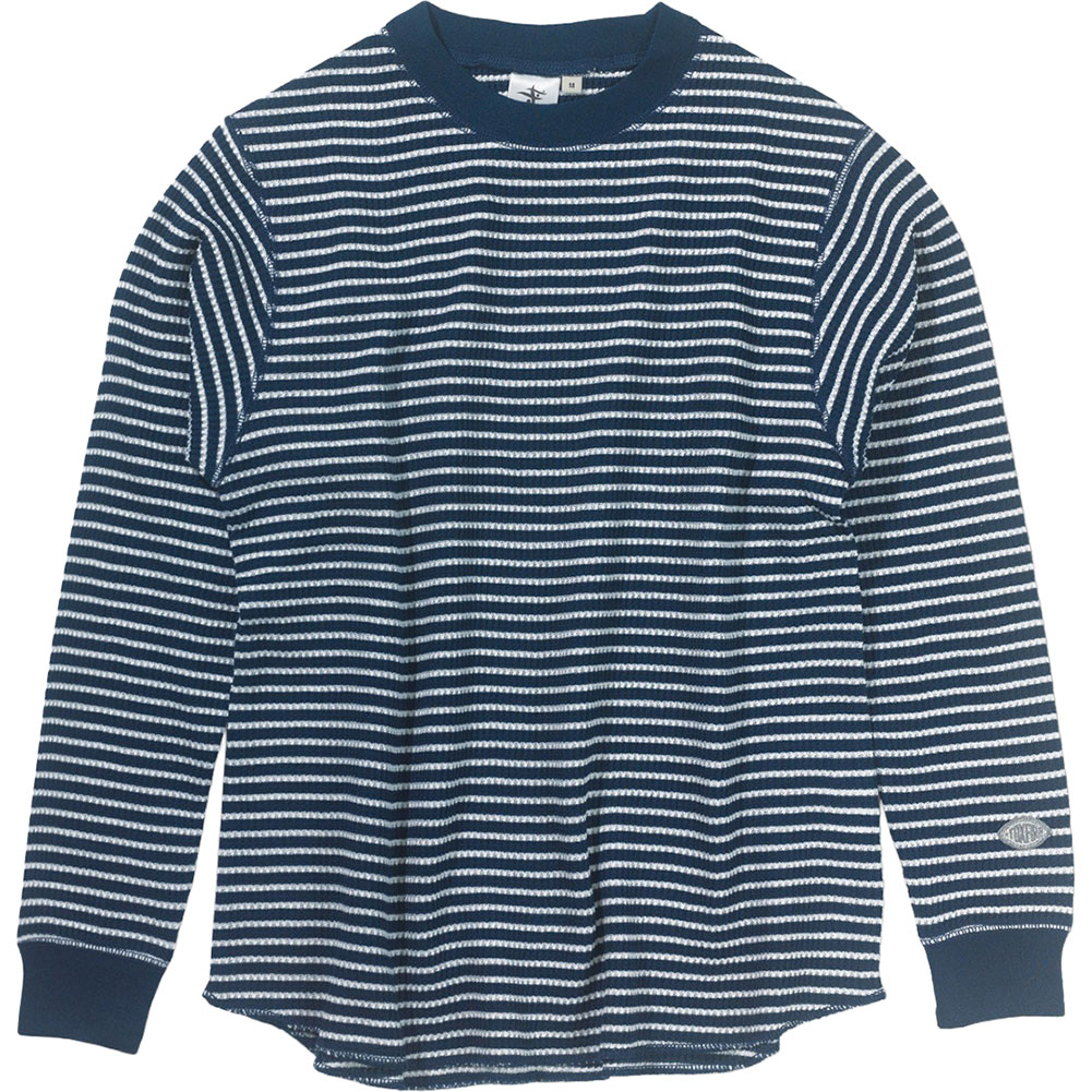 1945年ペンシルバニア州創業のサーマルウェア定番ブランド「JEモーガン」とのコラボレーション企画アイテム。伸縮性と保温性に優れるJEモーガン独自のワッフル編み構造が特徴です。秋から春まで3シーズンを通して着用しやすいモックネックデザインのロングスリーブTシャツです。