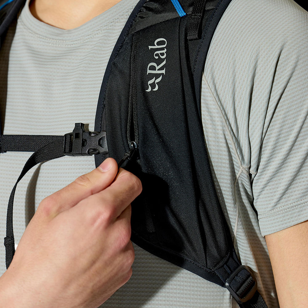 ・チェストストラップにソフトフラスクや必需品を収納できるポケット付き