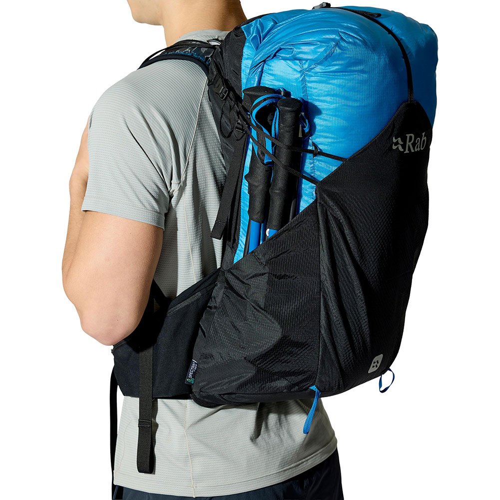 完全防水で通気性に優れた30Lのバックパック。軽量なマウンテンミッションにおいて、快適さを犠牲にすることなく重量を大幅にカットします。身体に密着するバックシステムが空気の流れを促進し、山小屋を巡る縦走やロングトレイル向けに設計されています。